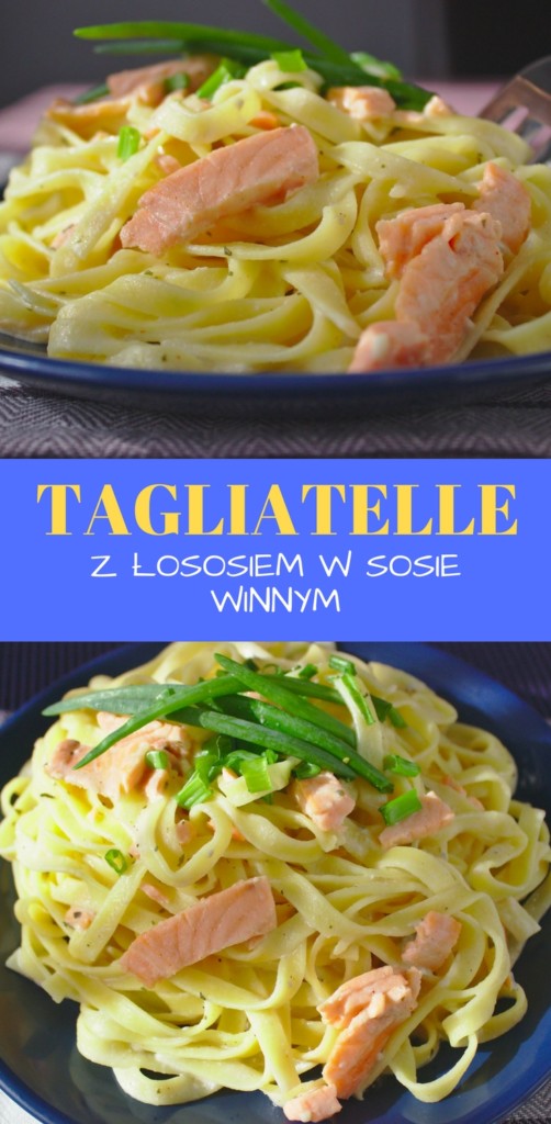 Makaron z łososiem w kremowym sosie winnym